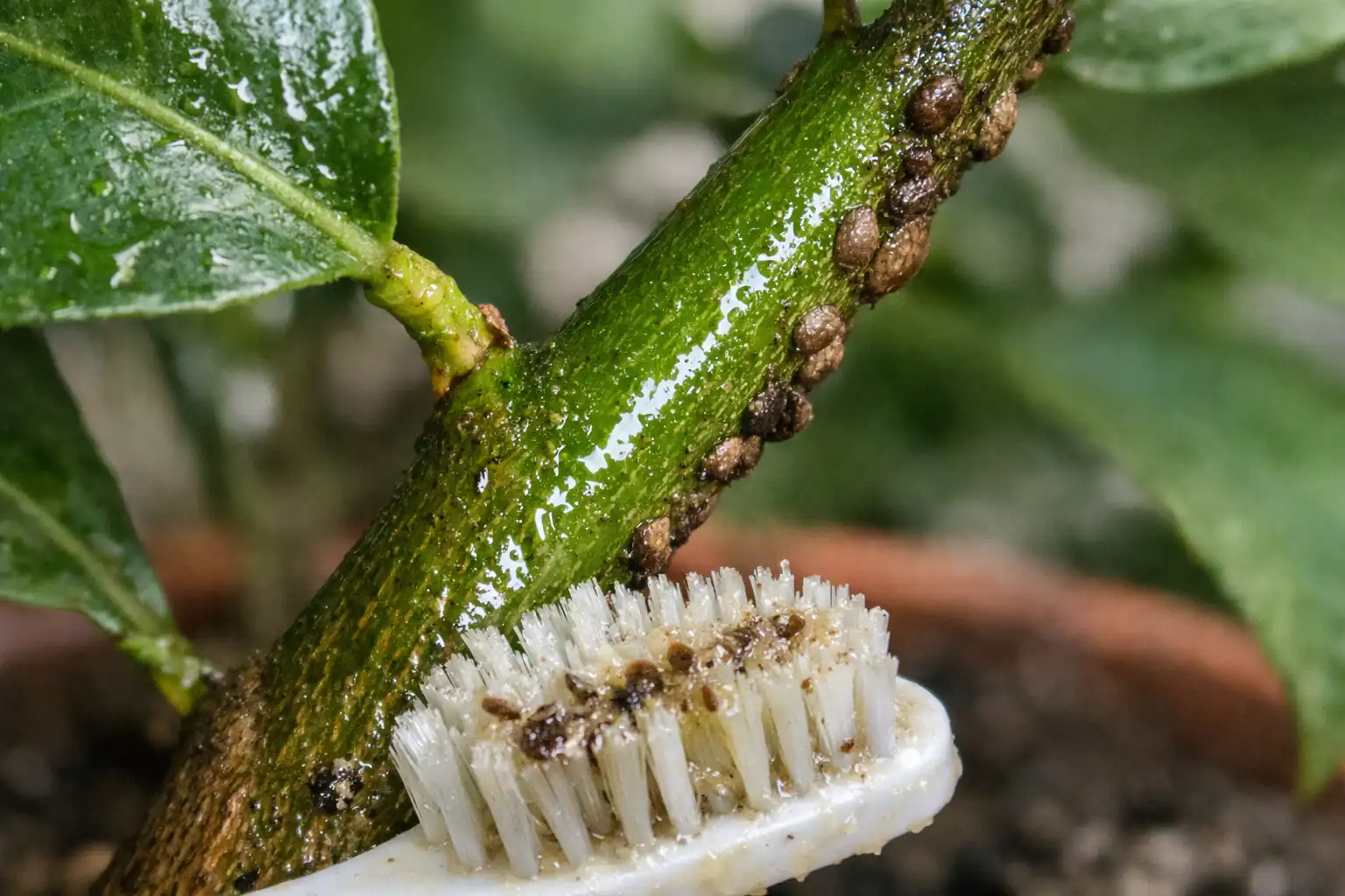 Mucha gente aconseja simplemente limpiar el limón con jabón, pero el oxiuro está protegido por una dura cáscara cerosa. La solución habitual simplemente se escurre. Para derrotar a la plaga, hay que destruir sus defensas o bloquear su respiración.