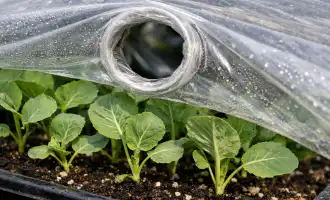 El contenedor se cubre con una película transparente para crear un efecto invernadero.