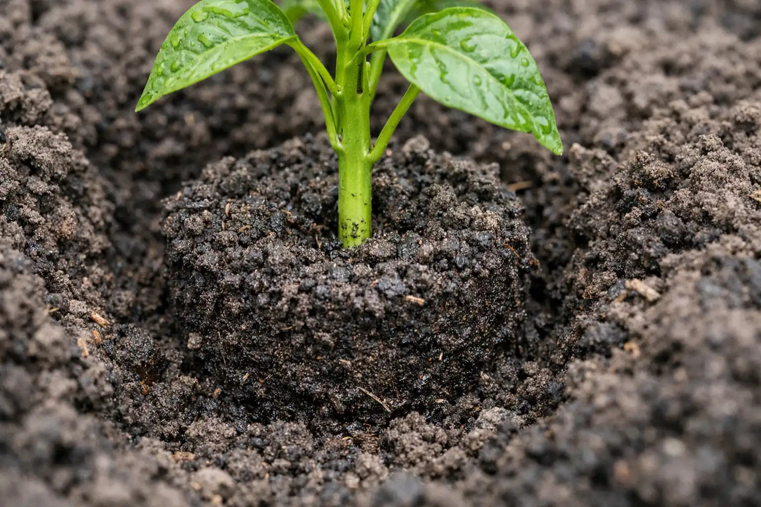 ¿Se deben enterrar los pimientos al plantarlos como los tomates? Los pimientos son muy malos para formar raíces adicionales en el tallo, por lo que es mejor plantarlos a la misma profundidad a la que crecían en la copa.