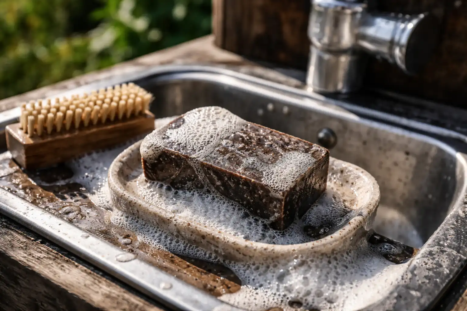 Utiliza sólo jabón en grumos, ya que suele tener una mayor concentración de alquitrán que sus homólogos líquidos.