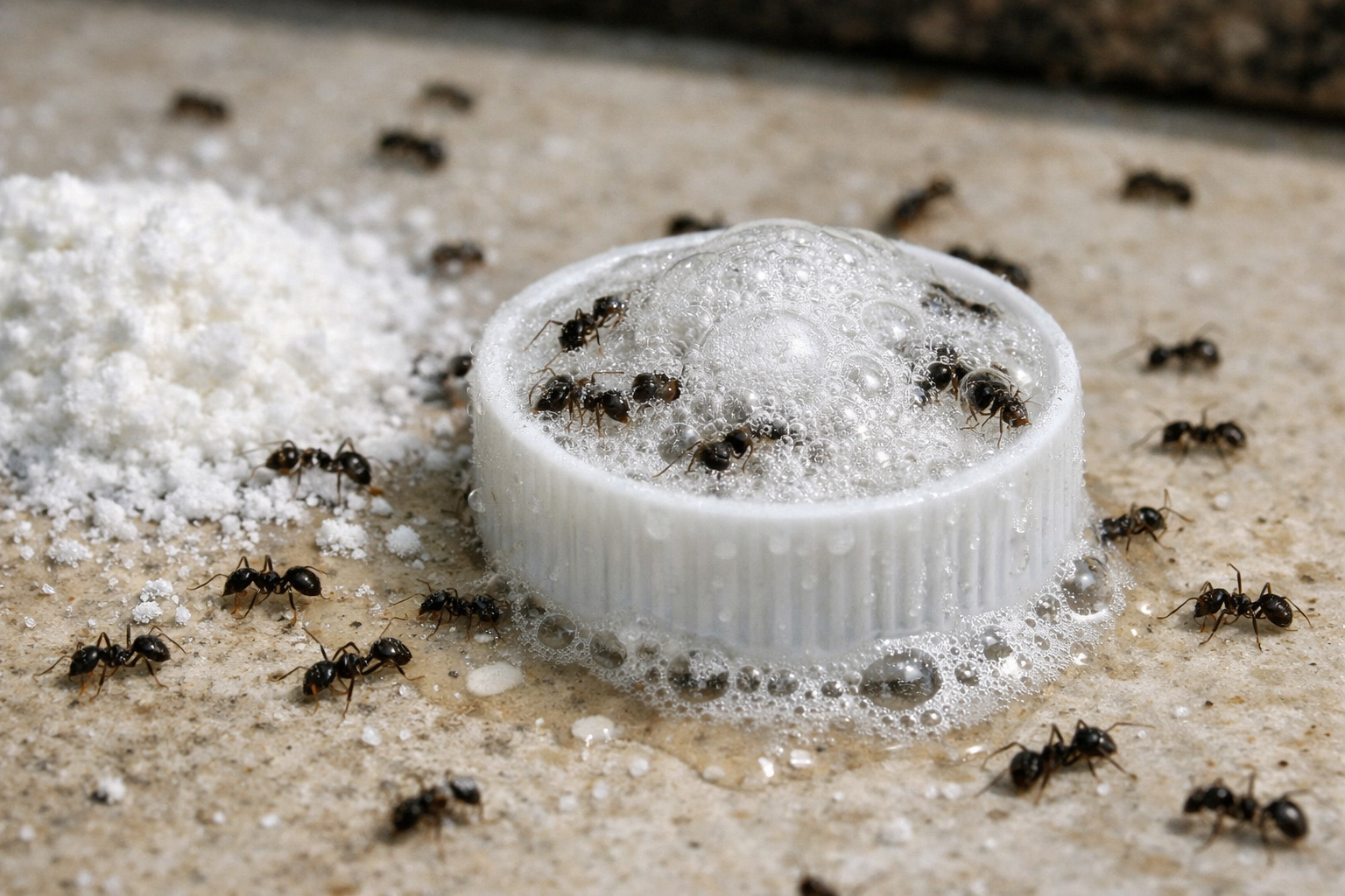 Secreto de experto: Nunca utilices azúcar normal en lugar de azúcar glas. Las hormigas son demasiado listas y se limitarán a clasificar la sémola de sosa, dejándola intacta. Sólo una molienda fina garantizará los resultados.