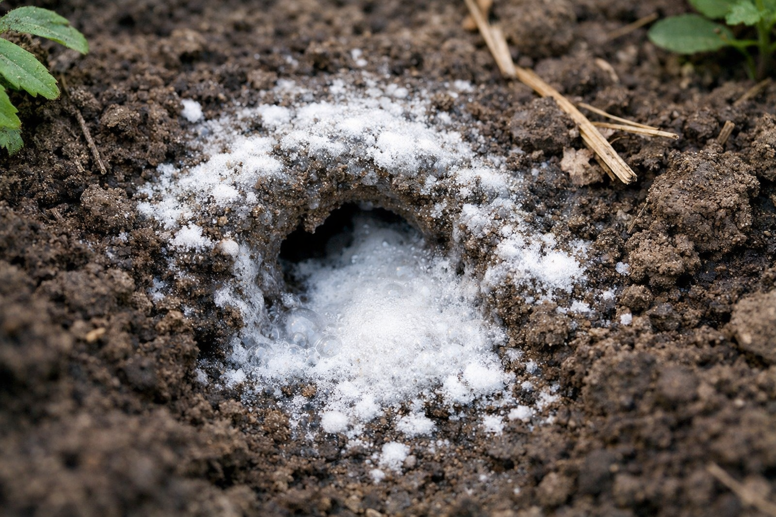 Además de empapar directamente las madrigueras, se puede utilizar bicarbonato sódico como preventivo en el momento de la plantación plántulas de tomate o pimientos.