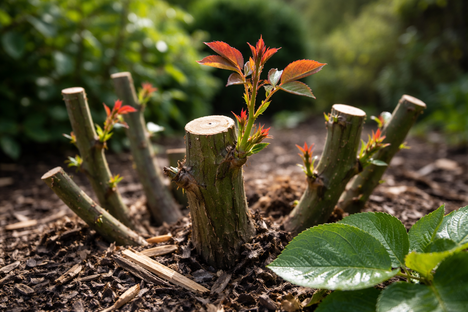 Estimular el crecimiento de brotes nuevos y fuertes. La poda hace que los brotes latentes se despierten.