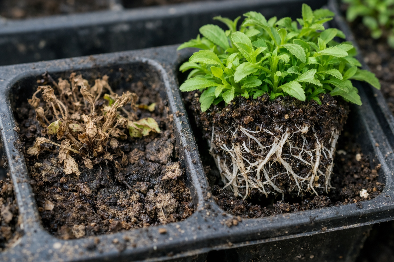 El principal enemigo de las plántulas en primavera es una combinación de la luz solar directa y el aire seco de los radiadores. Aunque la tierra parezca húmeda, las sumidades pueden estar secándose porque las raíces están inactivas en la tierra fría del alféizar y no tienen tiempo de bombear agua a las hojas.