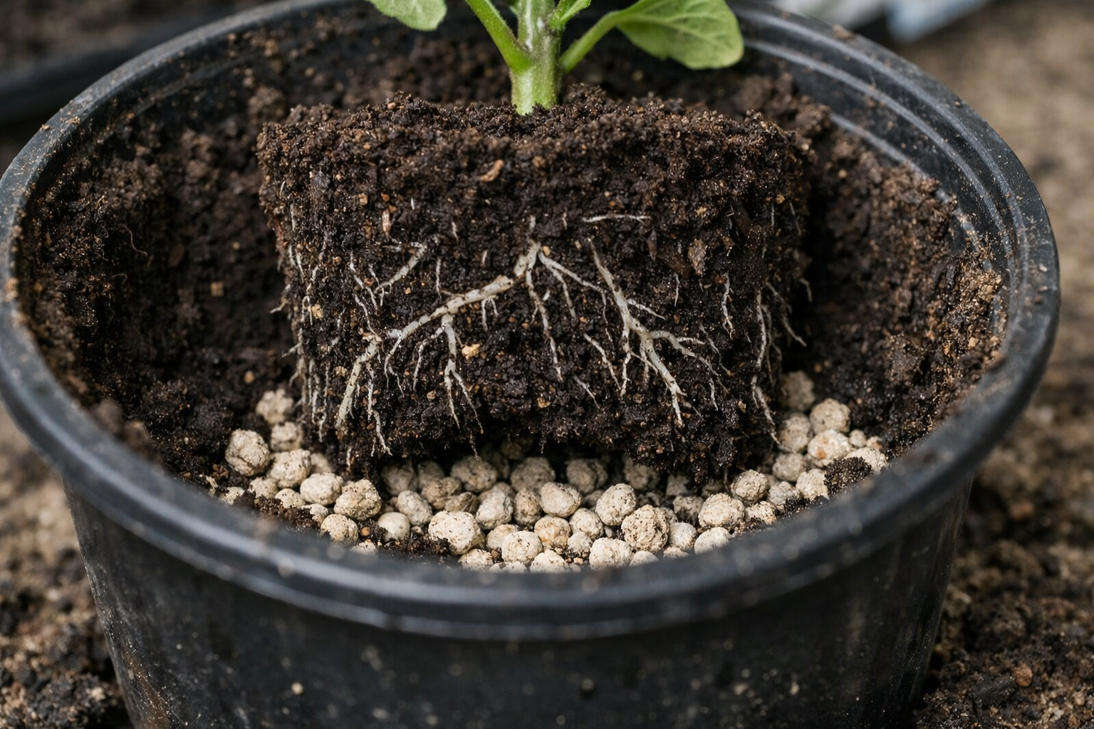 Comprueba si hay agujeros de drenaje; el agua estancada mata las berenjenas más rápido que la sequía.