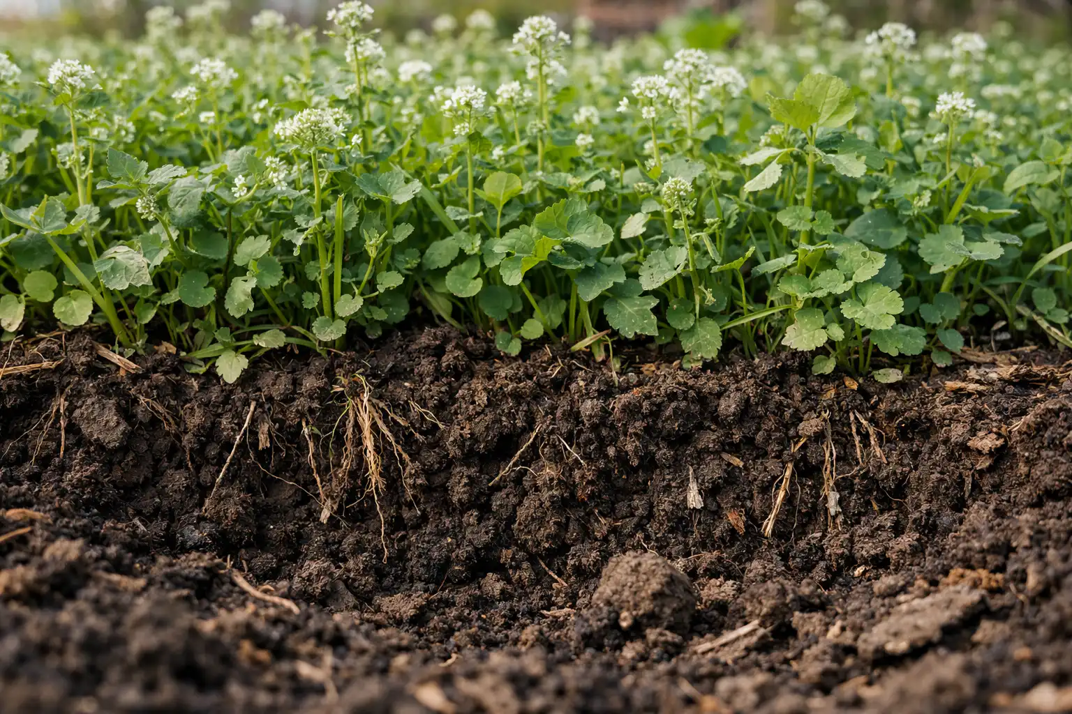 Las lluvias de primavera y el agua de deshielo transportan el nitrógeno a capas profundas donde las raíces de las plántulas no llegan. Los sideratos funcionan como una bomba viviente: llevan oligoelementos a la superficie y los retienen en su biomasa.