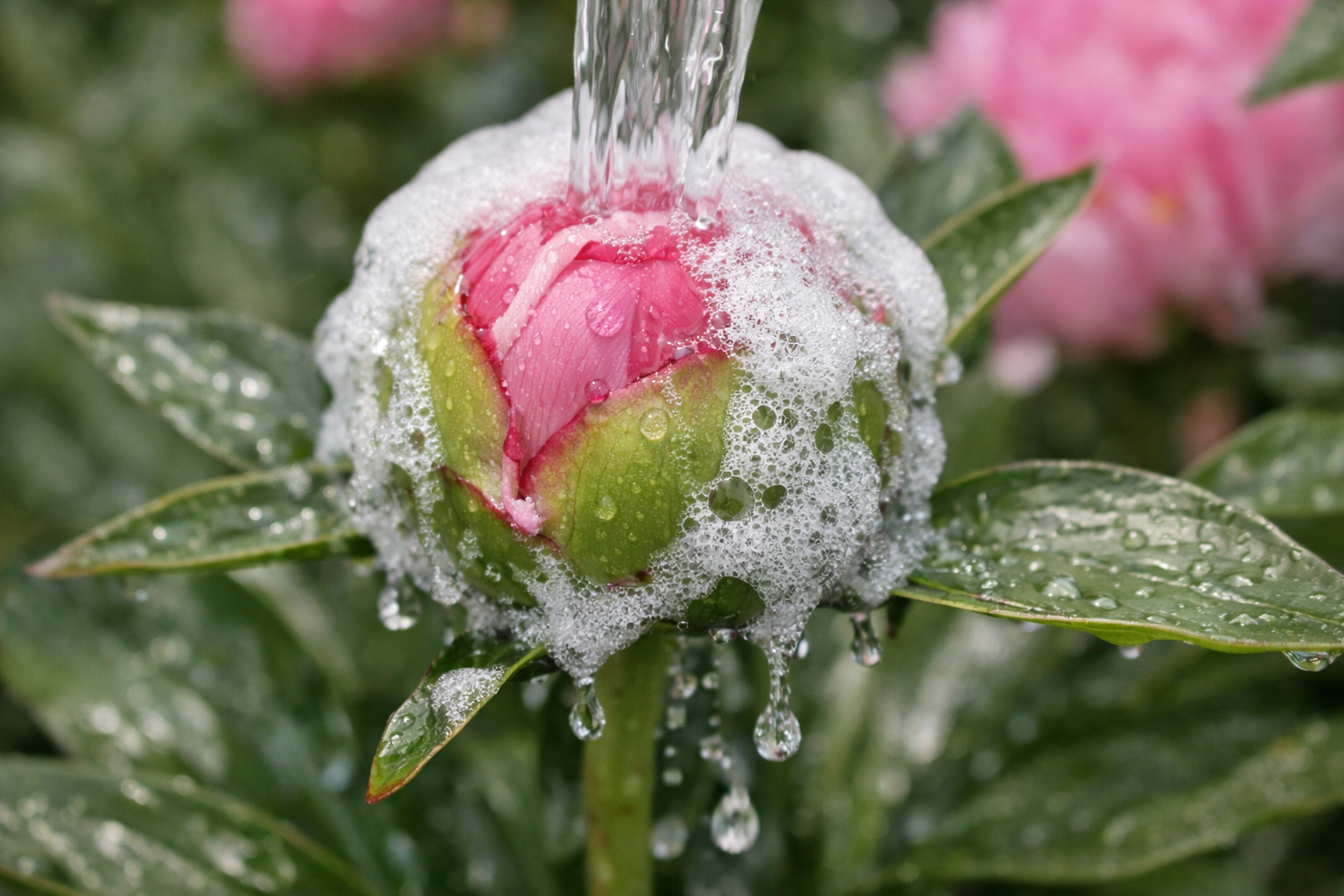 Matiz secreto: nunca utilice agua helada de pozo para la pulverización. Para la preparación de la composición tomar sólo agua templada a temperatura ambiente, a fin de no causar un choque térmico a la peonía.