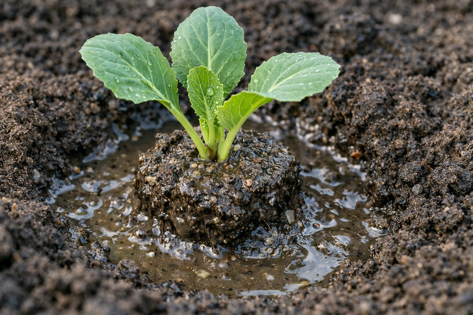 Las plántulas de col son extremadamente sensibles al estado del sistema radicular. Si simplemente sacas la planta de la caja, cortas hasta el 70% de las raíces chupadoras. Para evitarlo, siempre utilizo el método de la «papilla sucia».