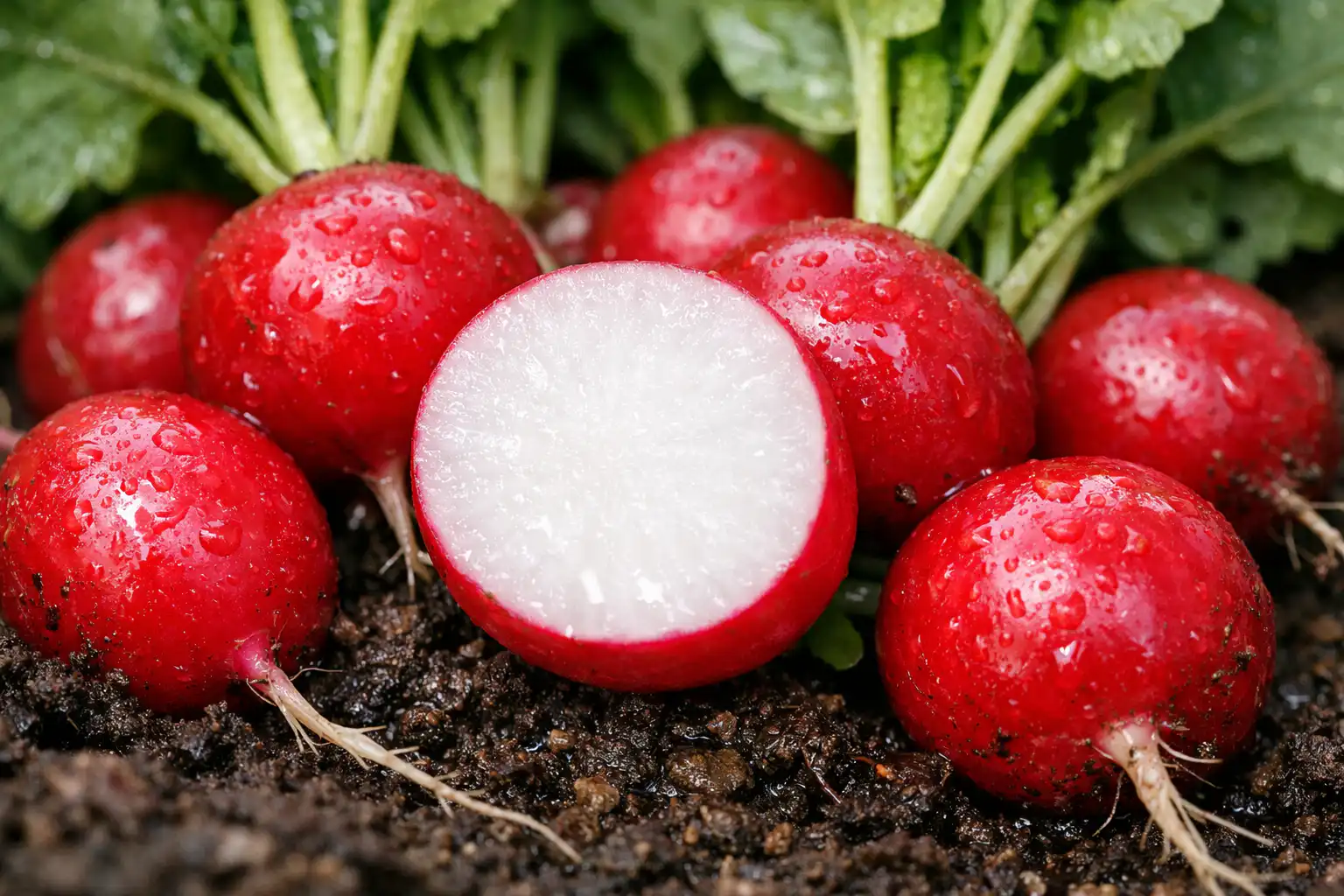 La textura crujiente de los rábanos depende directamente de su jugosidad, que se garantiza con un riego regular y suficiente.