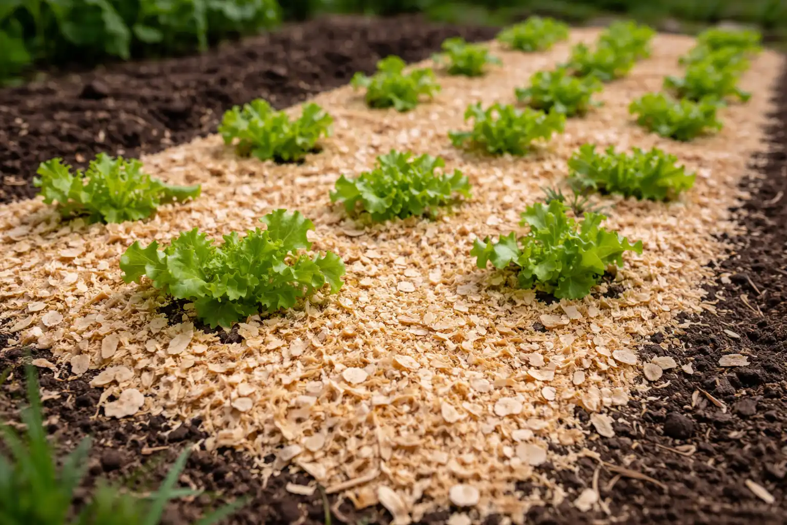 Las virutas secas constituyen una excelente barrera física para caracoles y babosas, protegiendo las hojas delicadas.