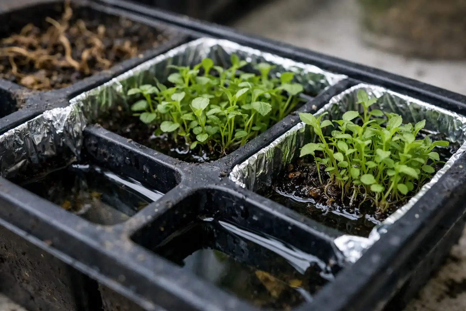 El endurecimiento de calidad de las plántulas antes de plantarlas en campo abierto les ayudará a tolerar más fácilmente las fluctuaciones de humedad en los casetes.