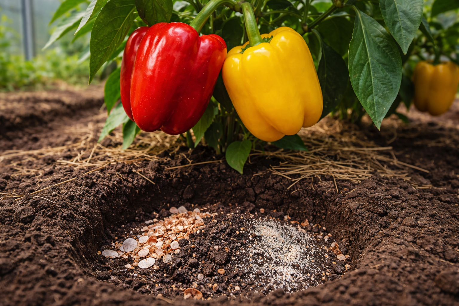 Matiz secreto: al pimiento le gustan las raíces «abrazadoras», pero no tolera la competencia de las malas hierbas. Después de plantar, asegúrate de cubrir la zona de las raíces con heno oscuro. Esto retendrá la humedad y proporcionará calor adicional al descomponer la materia orgánica.