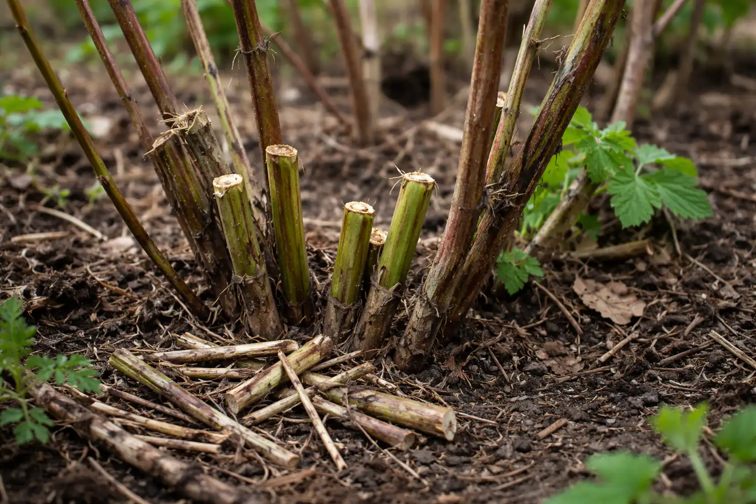 – Elimine todas las ramas que dieron fruto el año pasado (en el caso de las frambuesas corrientes). – Corta los brotes con signos evidentes de enfermedad y daños mecánicos. – Aclare el arbusto para que haya espacio entre las plantas.