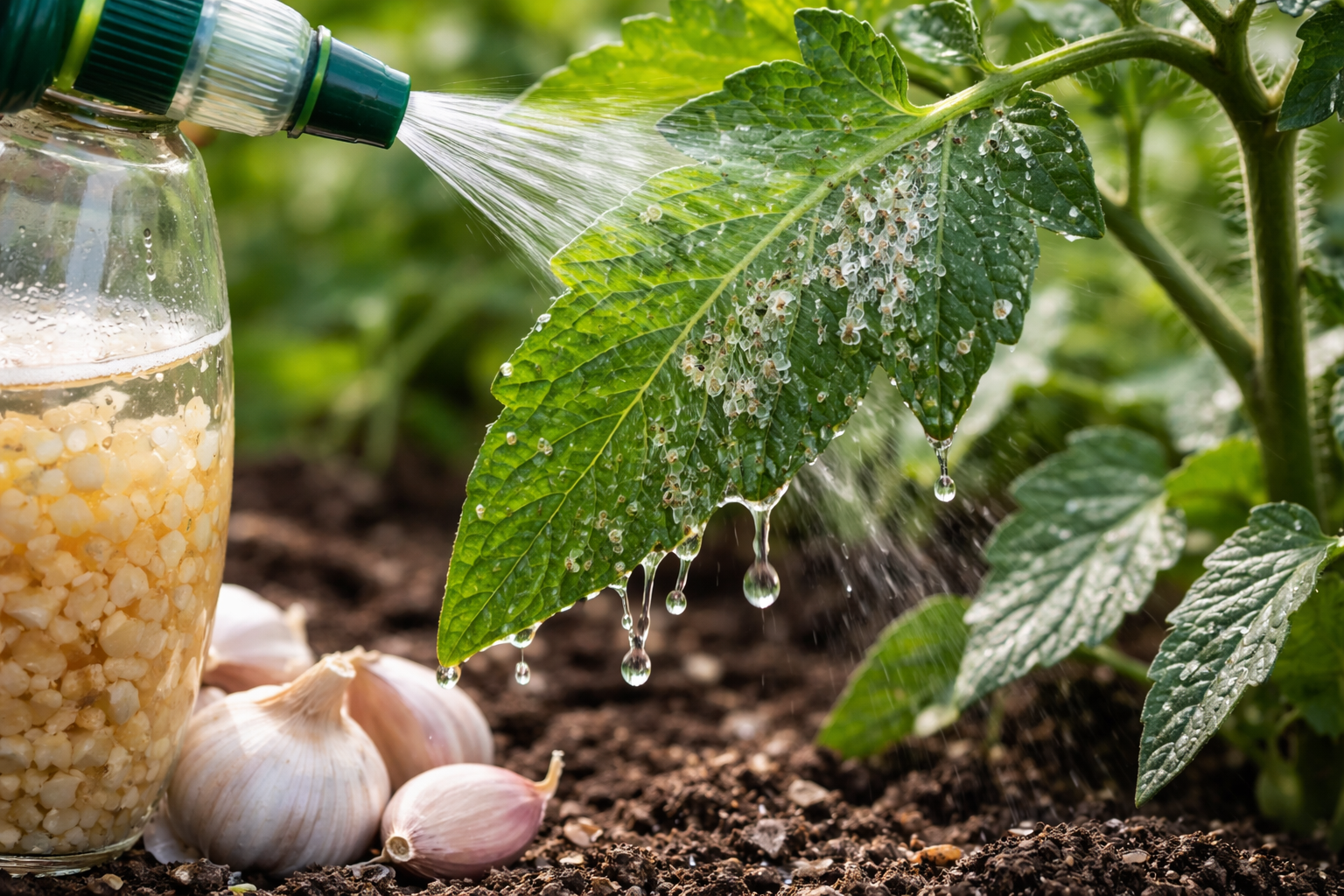 – Lavar las hojas de tomate con una solución de jabón de lavandería. – Utilizar una infusión ajo (150 gramos de dientes picados por litro de agua, infundir durante 5 días y diluir 6 ml por litro). – Prueba a pulverizar con la infusión Milenrama.