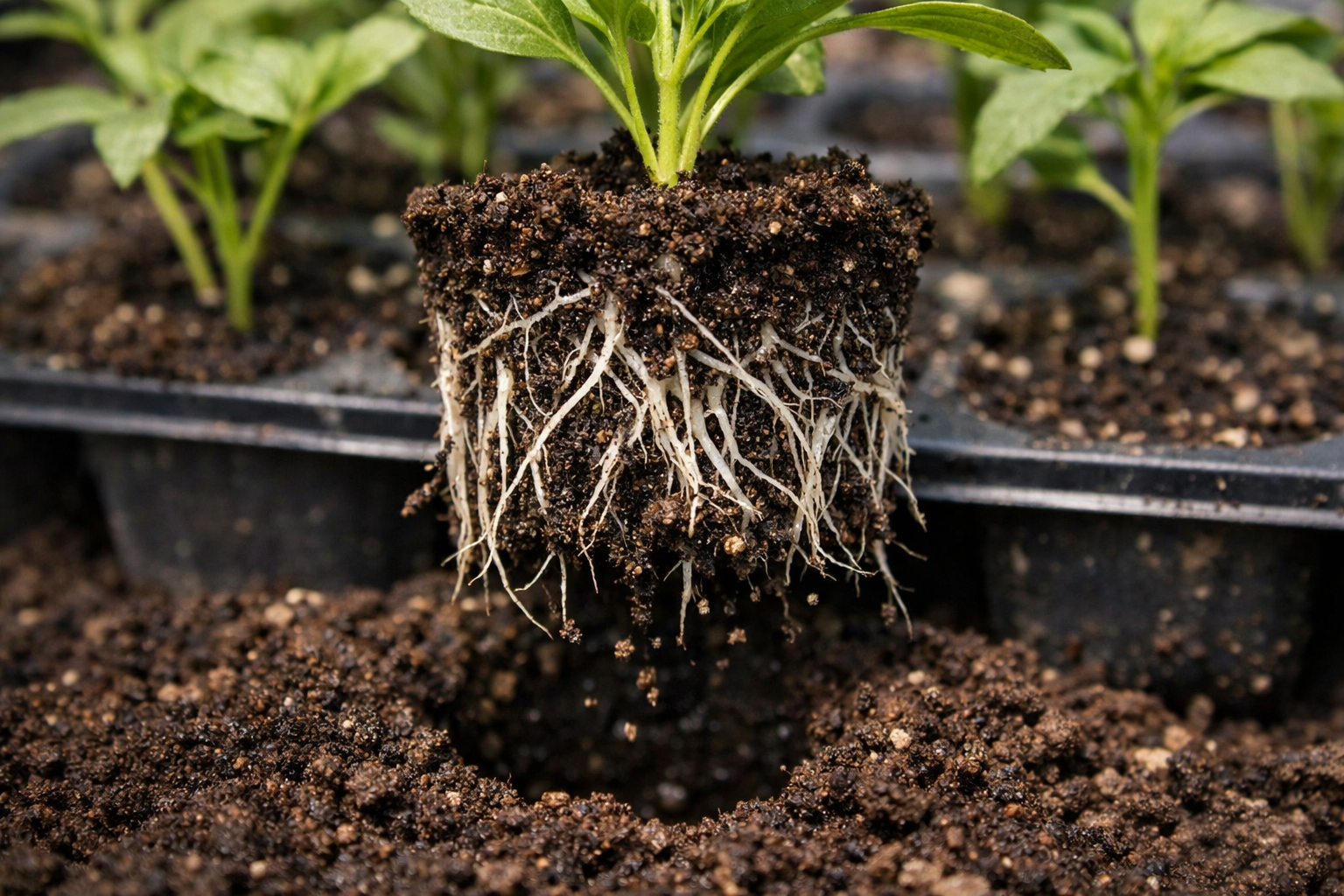 Estimulación del sistema radicularLas raíces comienzan a ramificarse más rápidamente, lo que aumenta el área de absorción de nutrientes.