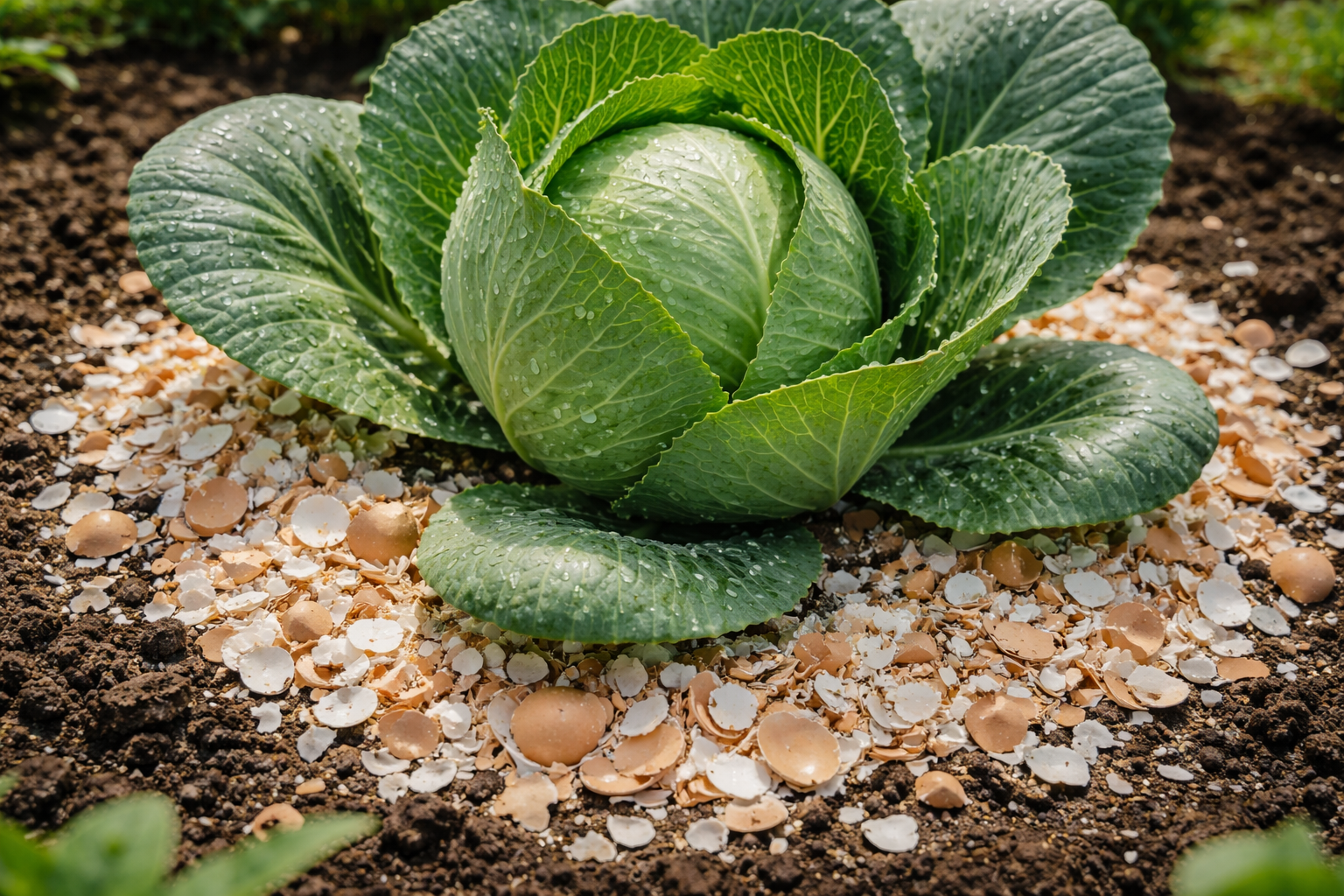 La col es extremadamente sensible a los niveles de acidez del suelo y a los ataques de plagas terrestres. La cáscara resuelve ambos problemas al mismo tiempo, actuando como un suave desoxidante y barrera mecánica.