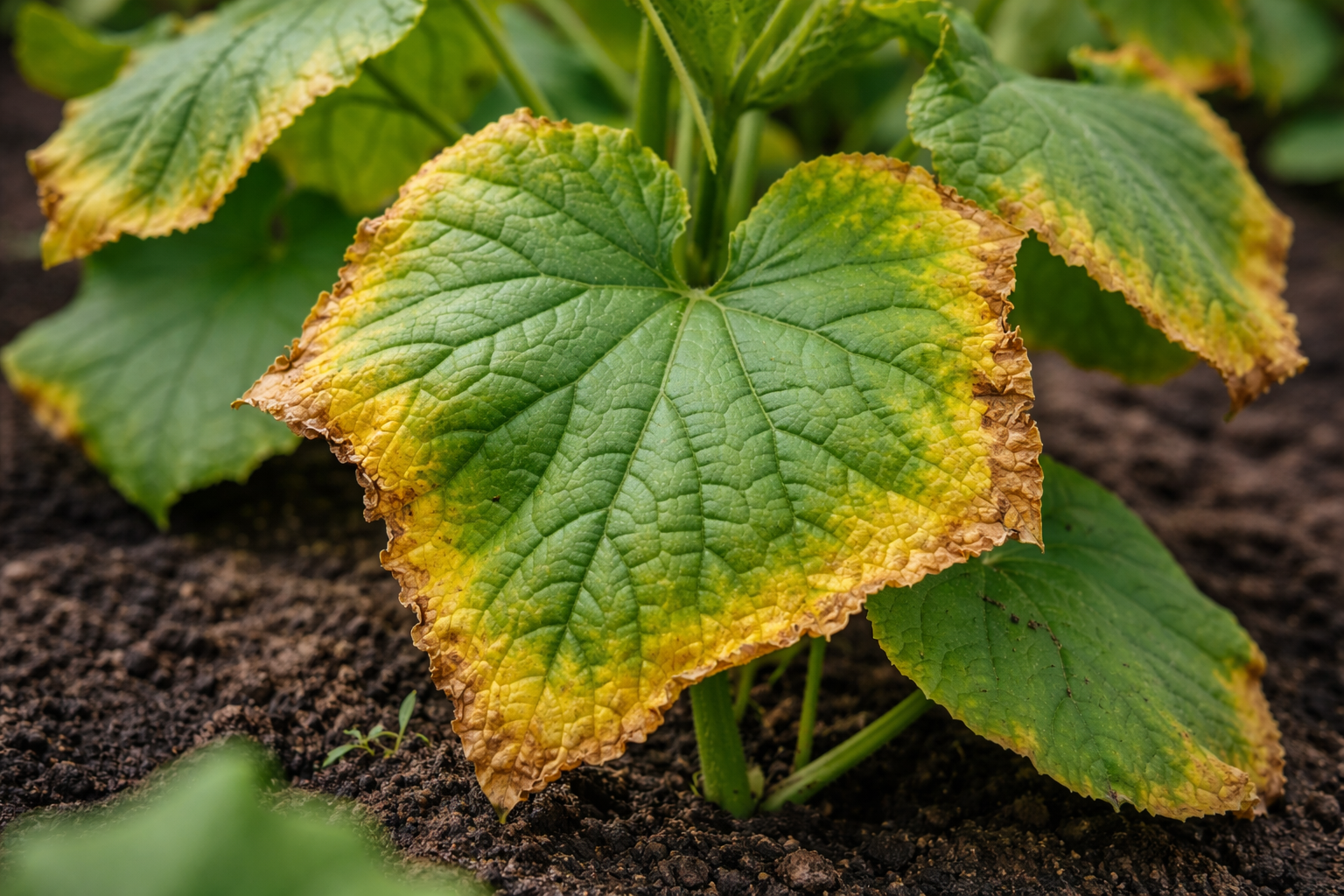 Los pepinos son auténticos «devoradores de agua» y son muy sensibles a la concentración de sales en el suelo. Cuando intentamos alimentar las plántulas débiles con potasio, a menudo se produce el efecto contrario. Si aplicamos abono en tierra seca o utilizamos formas cloradas, las raíces sufren una quemadura química.