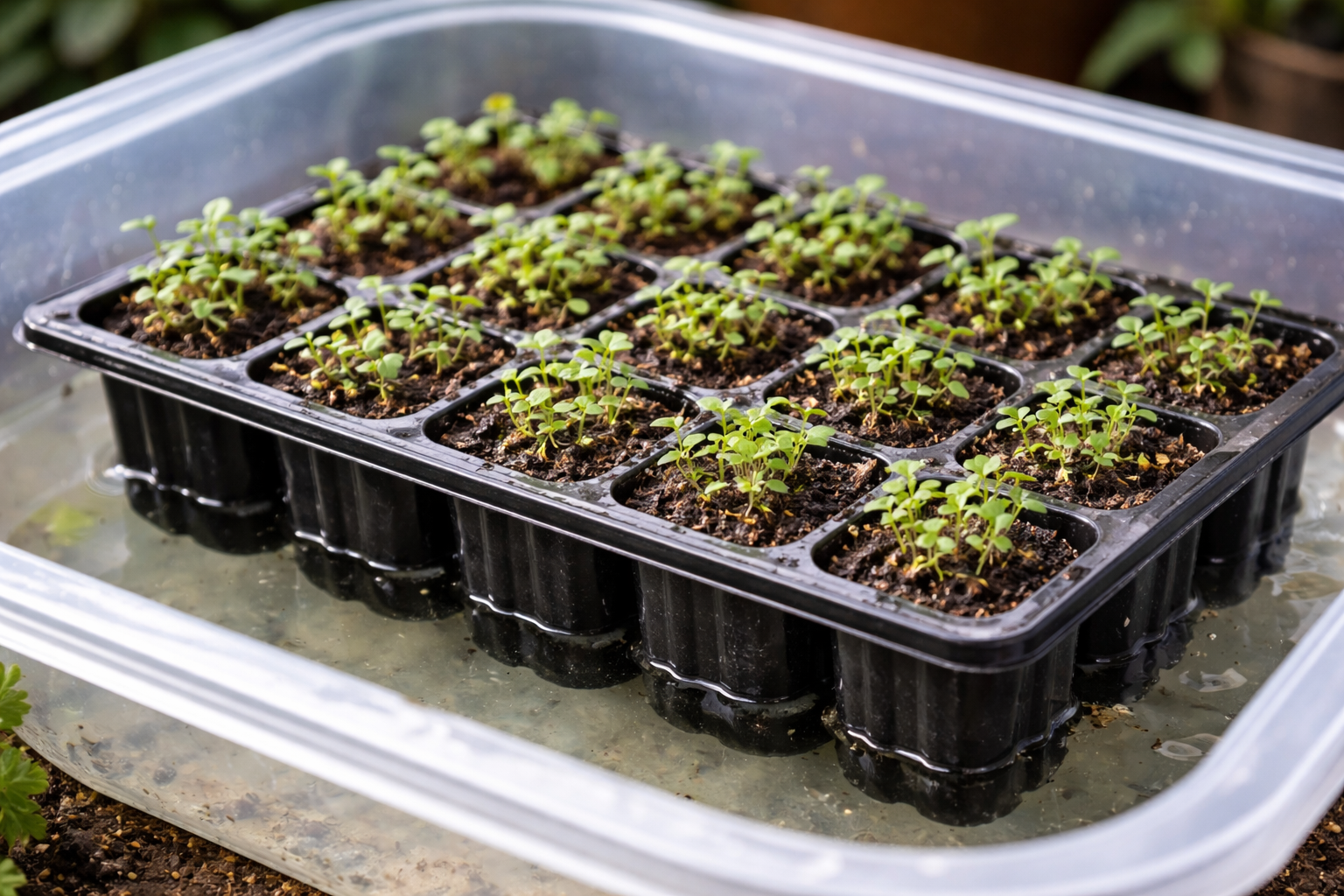 La razón principal de la muerte de las plántulas – una fuerte pérdida de humedad en el casetes. Las pequeñas celdas se secan de forma irregular y las delicadas raíces de lobelia no tienen margen de seguridad.