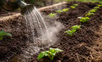 «El agua fría en suelo helado es inútil, ya que las raíces no podrán asimilarla hasta que el suelo se caliente».
