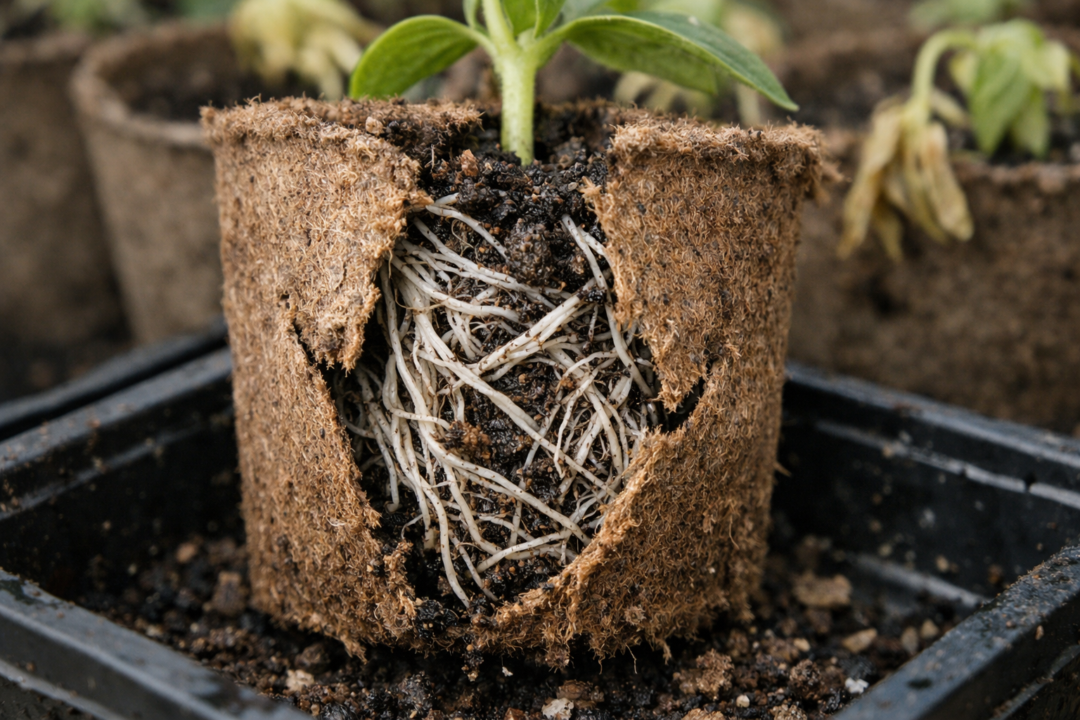 El error más común es creer que la maceta de turba se disolverá por sí sola en el suelo. En la práctica, las paredes suelen ser demasiado densas. Las raíces del pepino no pueden atravesarlas, empiezan a crecer hacia dentro, formando un bulto denso, y el plantón empieza a crecer en la maceta muere lentamente por falta de nutrición.