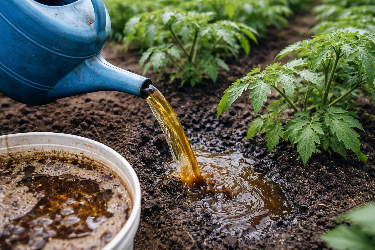 Nunca vierta la infusión sobre la tierra seca, primero riegue abundantemente el bancal con agua limpia.