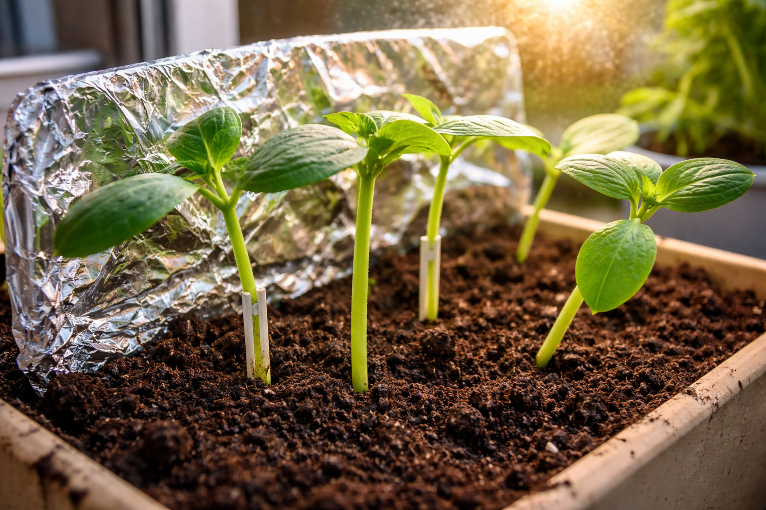 Coloque una pantalla de aluminio o un espejo detrás del plantón para reflejar la luz diurna residual.