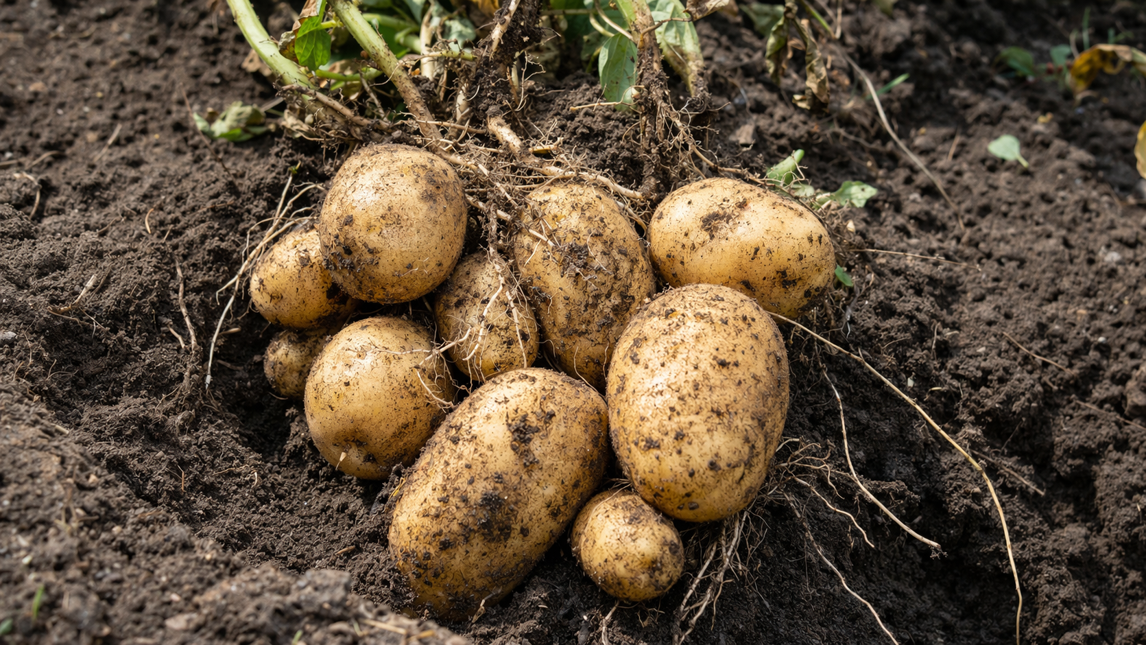 Para una comprobación precisa, recomiendo utilizar el método prueba de excavación. Selecciona dos o tres arbustos en distintas partes del bancal. Si los tubérculos se separan fácilmente de los estolones (brotes subterráneos), el aporte de nutrientes ha cesado.