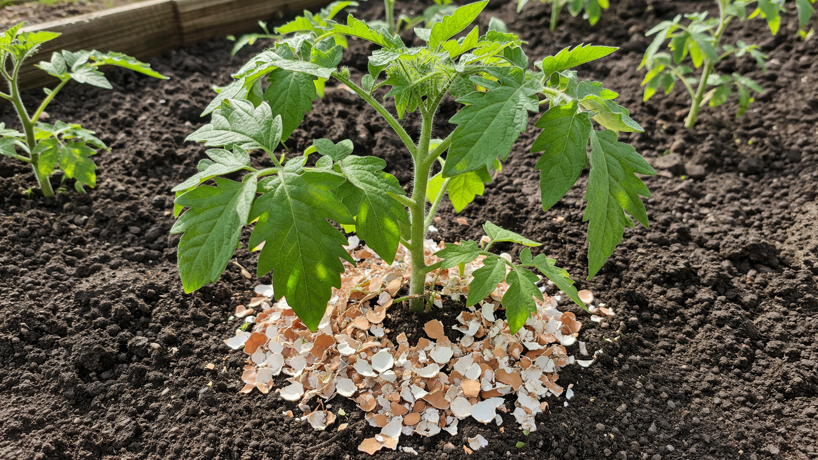 En primavera, el suelo suele regarse en exceso y acidificarse, lo que bloquea la asimilación de nitrógeno. El polvo de huevo actúa como un desoxidante suave. A diferencia de la cal o la harina de dolomita, actúa gradualmente sin quemar las delicadas raíces de los tomates.