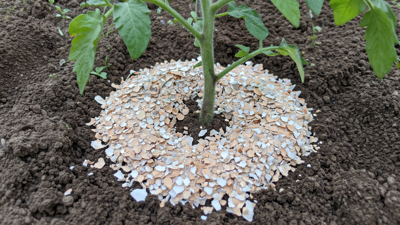 La aplicación primaveral de cáscaras de huevo ayuda a prevenir pudrición del vértice. Esta enfermedad fisiológica del tomate se produce precisamente por falta de calcio, cuando el fruto no tiene tiempo de formar una piel sana y empieza a pudrirse por la parte inferior.