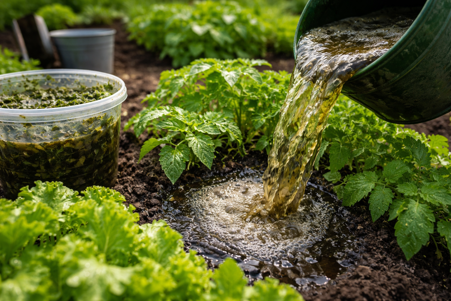 Esta infusión es universal, pero algunas plantas reaccionan a ella con especial violencia. En primavera, me aseguro de derramarla sobre los arriates de hortalizas.