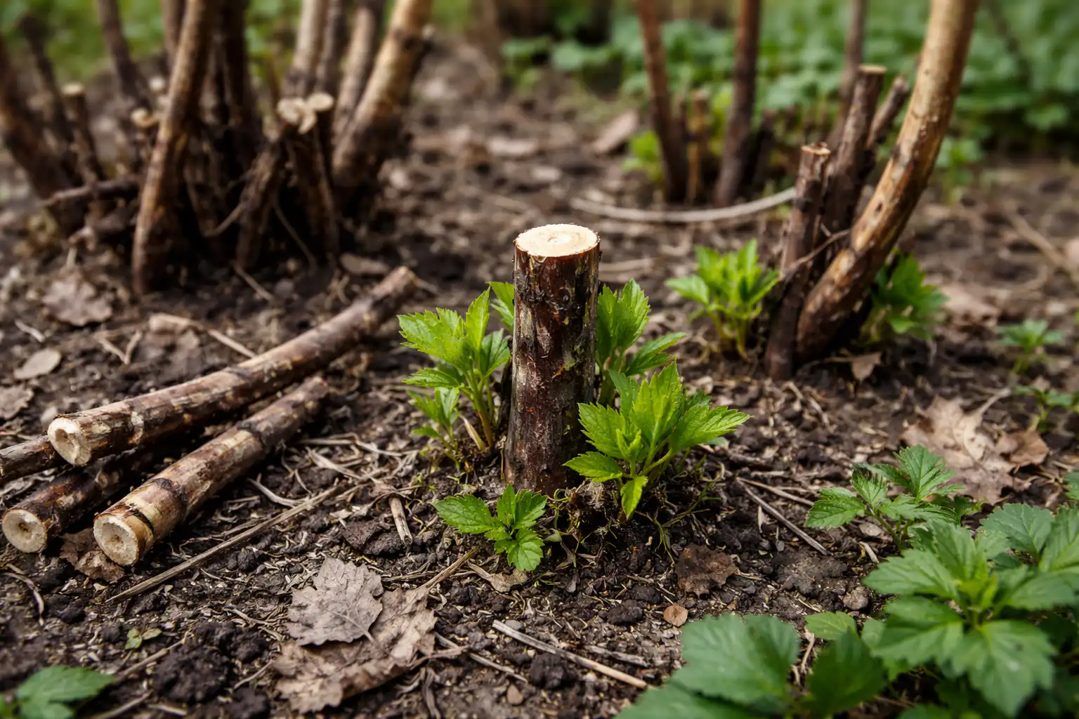 Eliminar completamente las ramas rotas, ennegrecidas y secas hasta el nivel del suelo.