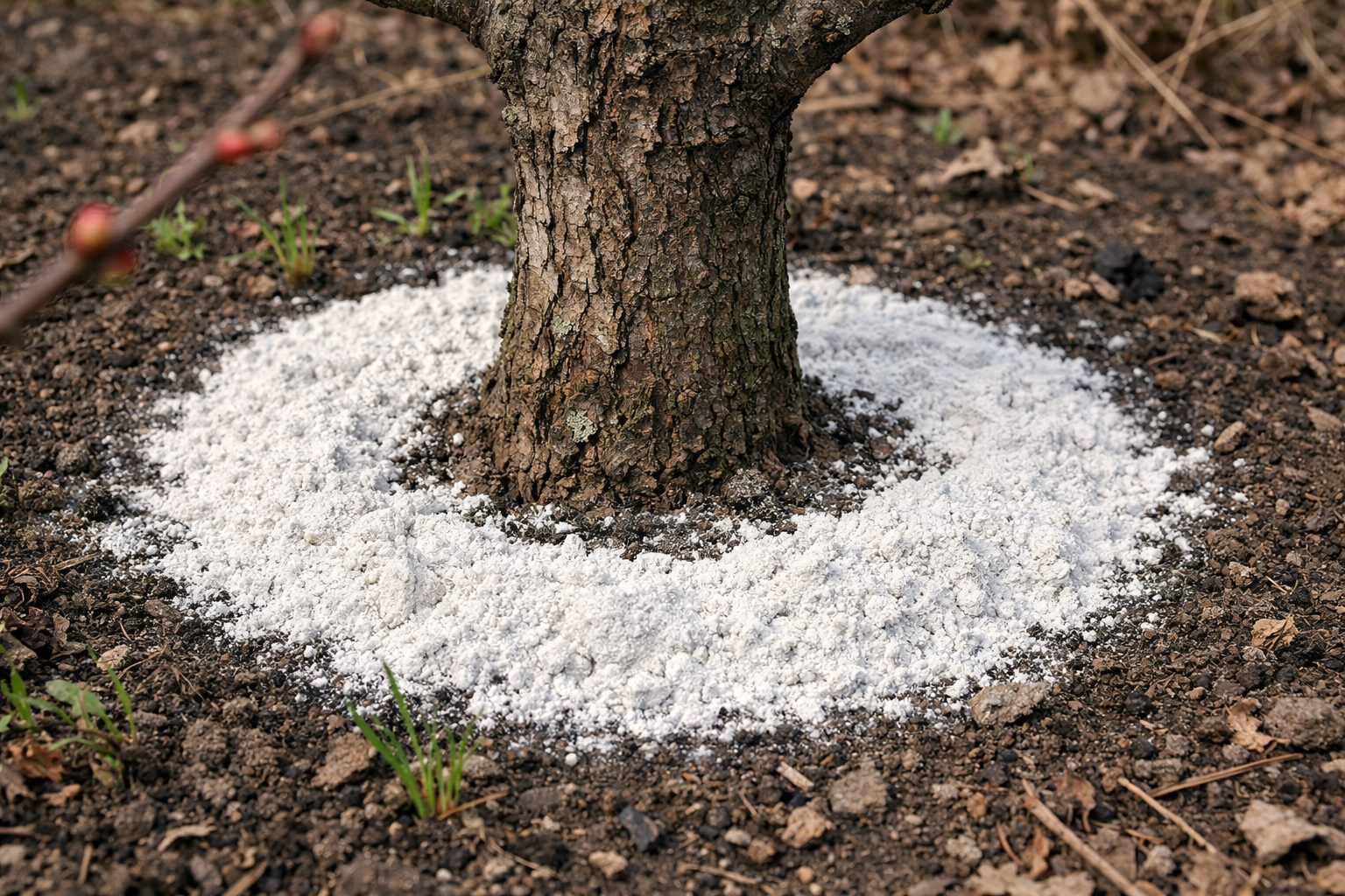 El mejor momento para el procedimiento es el periodo de fusión de la nieve o los primeros días tras su descenso. El suelo debe estar húmedo. El polvo debe esparcirse uniformemente por todo el perímetro de la copa, ligeramente alejado del tronco.
