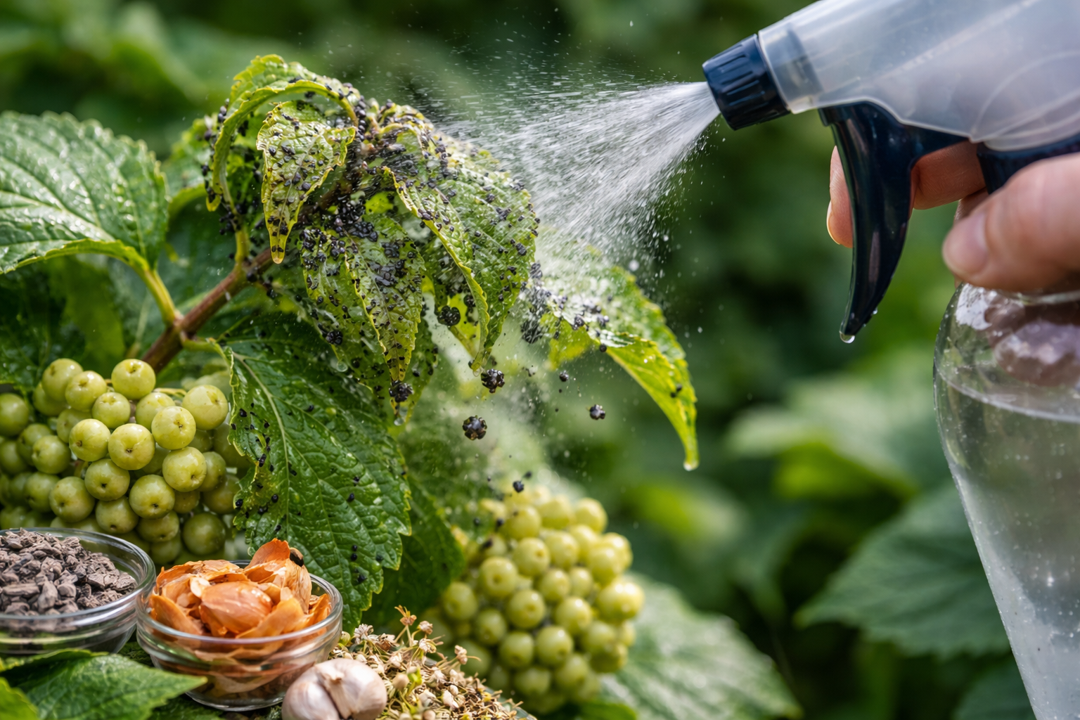 Para el control de insectos, sólo utilizo ingredientes naturales seguros para el medio ambiente y las futuras bayas.