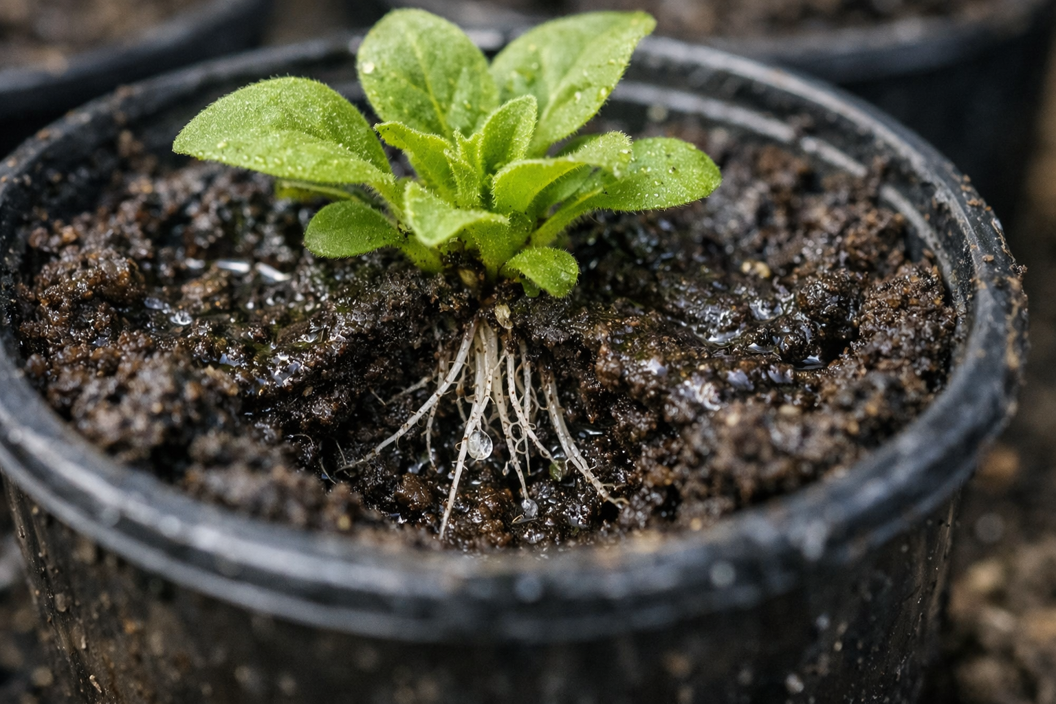 Cualquier trasplante supone un gran choque para la delicada estructura de la flor. El principal problema radica en las lesiones microscópicas pelos de succiónque se encargan de alimentar a la planta. Cuando estos diminutos elementos se lesionan, la plántula sigue evaporando activamente la humedad a través de las hojas, pero las raíces ya no pueden compensar físicamente esta pérdida.