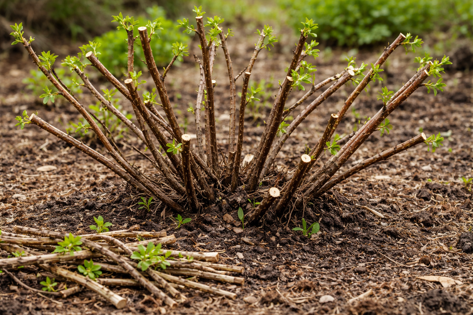 Regla importante: es mejor cortar radicalmente una rama vieja y gruesa en el suelo que cortar una docena de pequeñas ramas jóvenes en la periferia.
