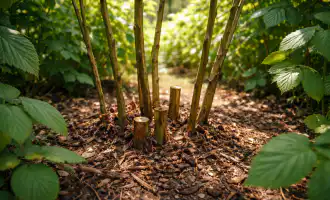 Colocación de mantillo seco en las camas para controlar estrictamente la evaporación de la humedad del suelo.